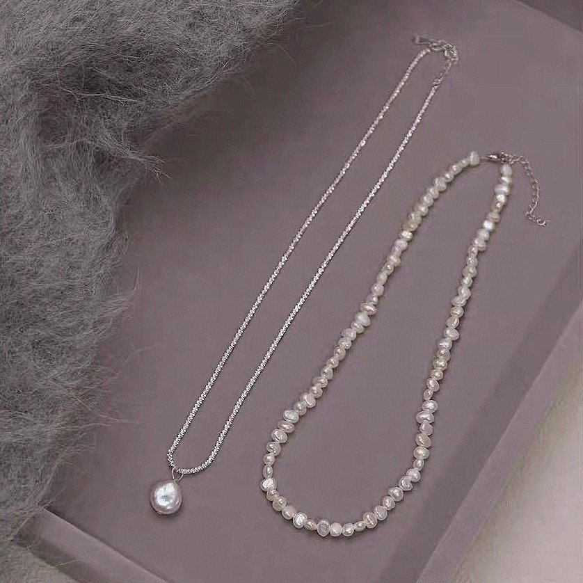 Double-layer stacking baroque collarbone chain pendant, French niche light luxury Zhuji natural fresh water