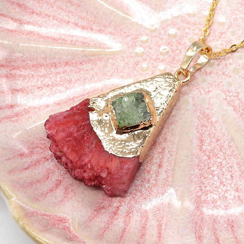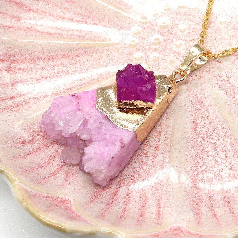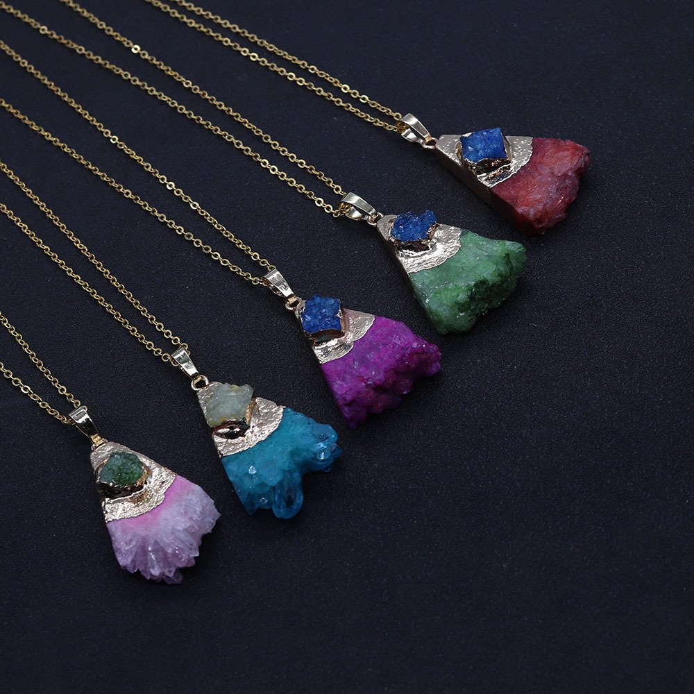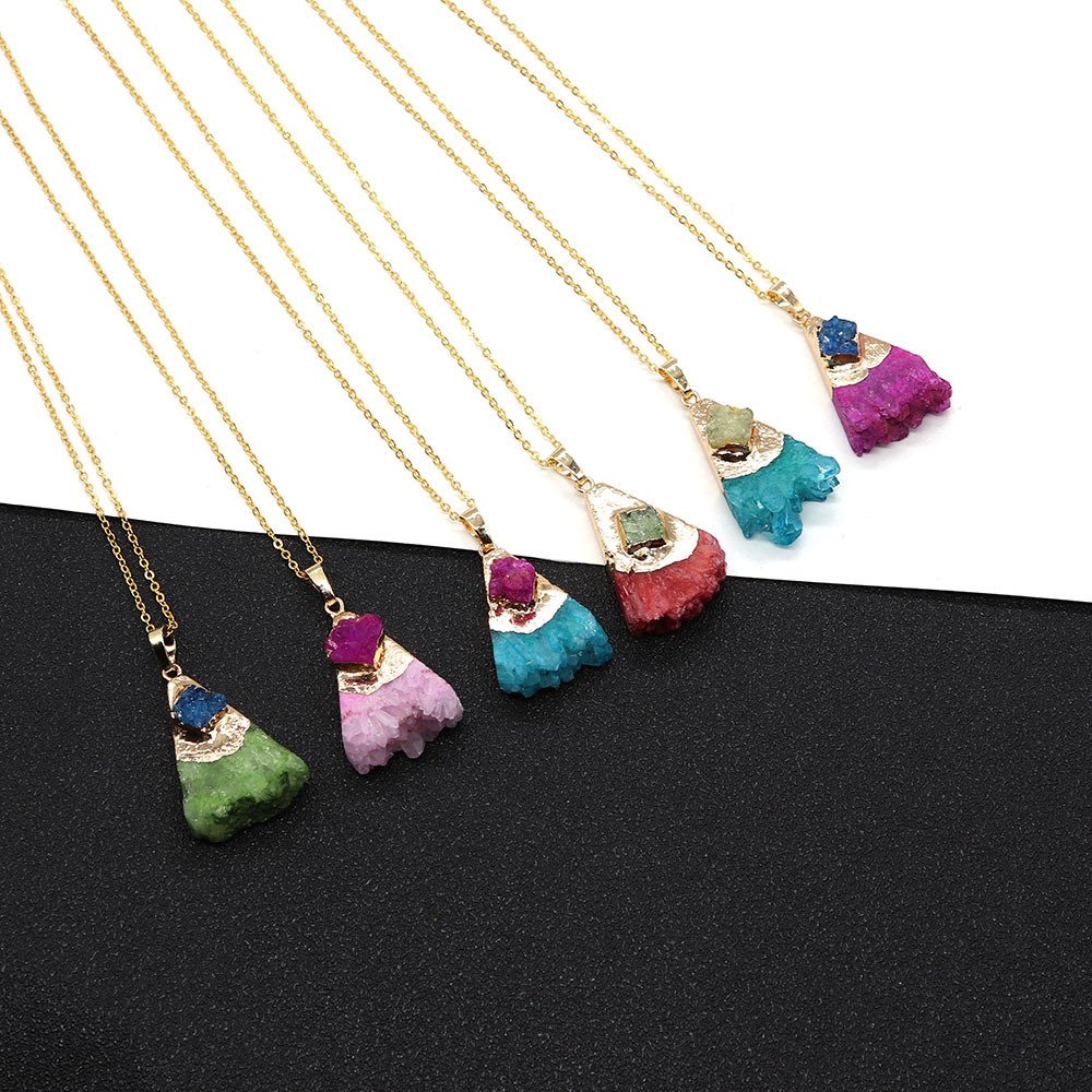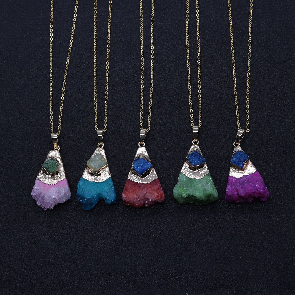 • Natural stone crystal tooth triangular pendant necklace. Fashionable crystal inlaid agate pendant necklace jewelry gift.