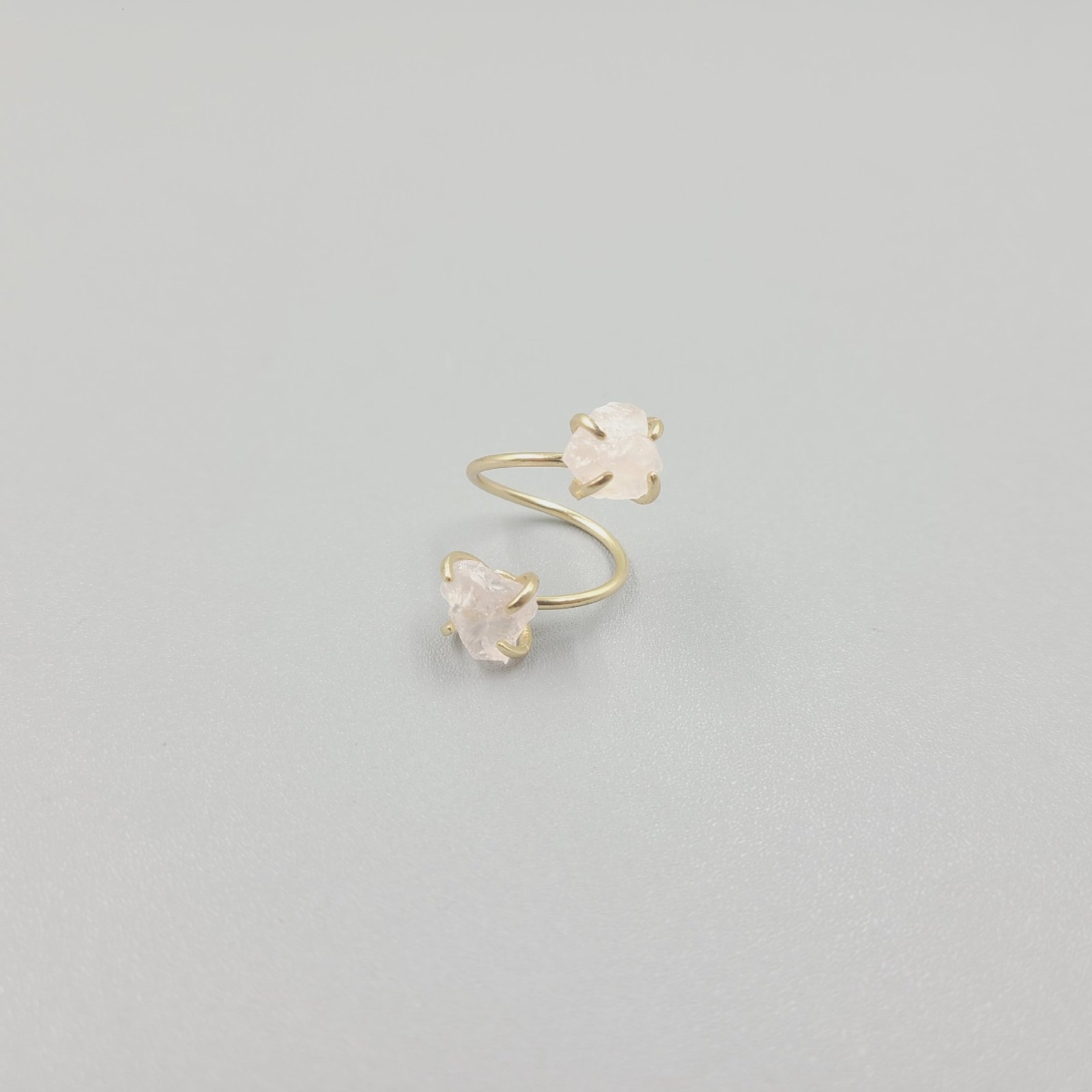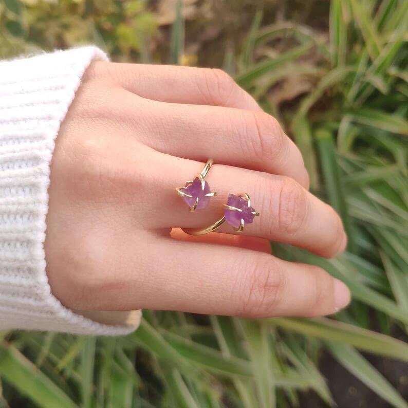 Simple style natural stone original stone pink crystal amethyst double four-claw fixed ring multi-color adjustable